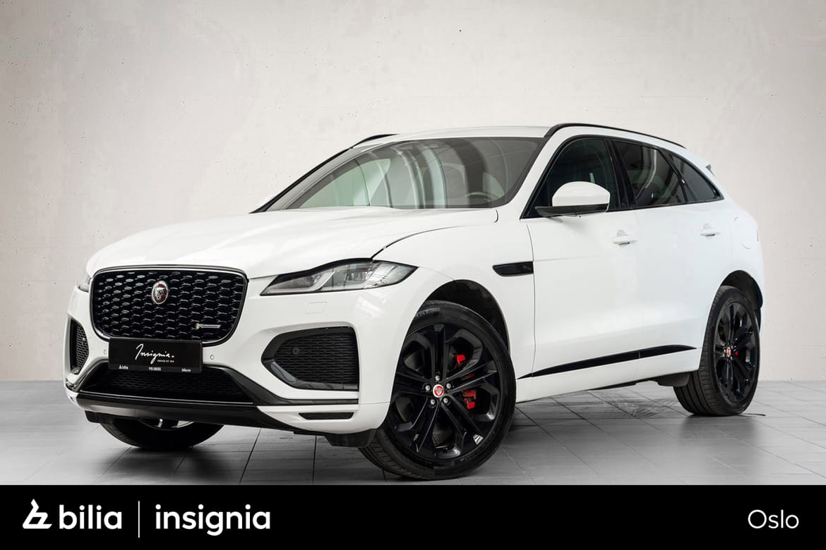 2023 Jaguar F-Pace P400e PHEV R-Dynamic SE i Fuji White. Ladbar hybrid med firehjulstrekk, automatgir og 404 hk. Dette er en premium-SUV som kombinerer presis kjøredynamikk med høy komfort, lavt støynivå og moderne infotainment. R-Dynamic SE byr på sportslig designuttrykk, gjennomført materialkvalitet og et utstyrsnivå som dekker både hverdagsbruk og lengre turer. Norsk bil med 21” originale Jaguar-felger og fast panoramatak.